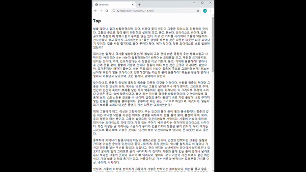 | [html/css] 간단하게 scrollbar 스크롤바 두개 동시에 움직이기 (0) | 2020.11.12 |